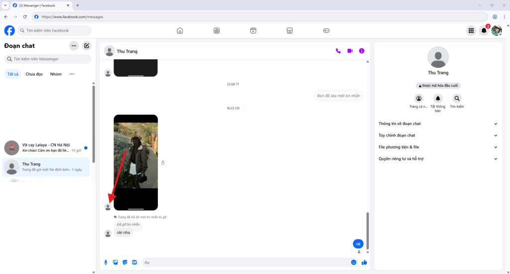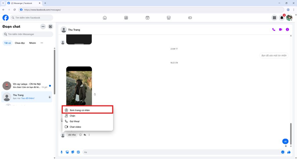 Bước 4: Tìm tin nhắn Facebook bị khóa rồi bấm vào ảnh đại diện của người đó.